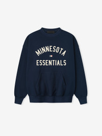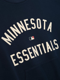 The Twins Sport Crewneck is crafted from core fleece, offering an elevated balance of softness, structure, and lasting comfort. Cut in a relaxed sport fit, it drapes with more ease through the body and extended length compared to the Essentials classic silhouette. The front features a bold puffer-print graphic reading “Minnesota Essentials” alongside the MLB insignia, while the back is finished with the official Twins logo. Additional details include a kangaroo pocket, rib-knit collar, cuffs and hem. The signature rubberized Fear of God Essentials label accents the back. DETAILS - 80% COTTON / 20%POLYESTER FLEECE - ESSENTIALS SPORT FIT: RELAXED, CROPPED - MINNESOTA ESSENTIALS + MLB LOGO - TWINS LOGO - FEAR OF GOD LABEL - KANGAROO POCKET - ELASTIC BINDING AT COLLAR, CUFF AND WAIST HEM - IMPORTED