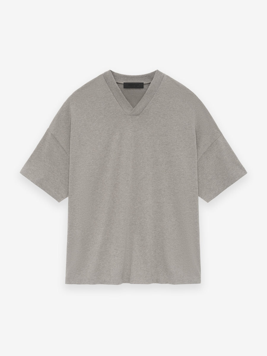 The Essentials V-neck tee is made in core cotton jersey. The rib-knit V-neck fits relaxed in the body with dropped shoulders. An Essentials Fear of God soft-touch logo is across the back and a Fear of God rubberized label is at the back collar. DETAILS - 100% cotton jersey, 220gsm - Relaxed fit body and sleeves - V-Neck rib-knit collar - Essentials Fear of God soft-touch rubberized logo on the back - Fear of God rubberized label at back collar - Imported