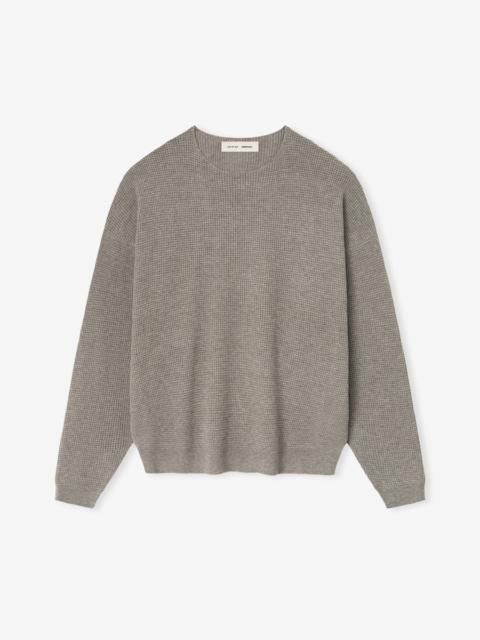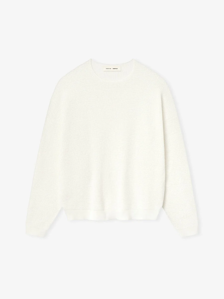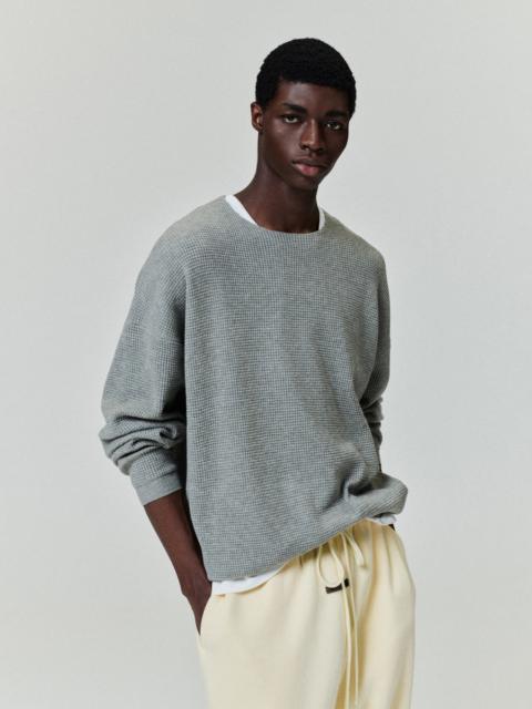 The Waffle Crewneck Sweater is made from heavyweight poly-nylon knit for warmth and stretch comfort. The fit is relaxed with drop shoulders, rib knit cuffs and waist hem. A "Fear of God Essentials" rubberized label is stitched at the back collar. DETAILS - 88% poly, 12% nylon waffle knit - Model is 6'1" and wears size Medium in Heather Stone - Essentials fit - relaxed body, sleeves - Rib-knit cuff, and waist hem - "Fear of God Essentials" translucent rubberized label - Imported