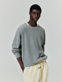 The Waffle Crewneck Sweater is made from heavyweight poly-nylon knit for warmth and stretch comfort. The fit is relaxed with drop shoulders, rib knit cuffs and waist hem. A Fear of God Essentials rubberized label is stitched at the back collar. DETAILS - 88% poly, 12% nylon waffle knit - MODEL IS 6’2” AND WEARS SIZE MEDIUM IN CONCRETE HEATHER - Essentials fit - relaxed body, sleeves - Rib-knit cuff, and waist hem - "Fear of God Essentials" translucent rubberized label - Imported