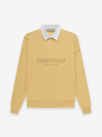 The iconic Henley rugby is updated in a heavyweight waffle knit to provide warmth with compelling texture. Modern branding is evident in the rubberized Essentials Fear of God logo on the chest. The piece is framed in a contrasting oxford collar, rib-knit cuffs, and waist hem. An Essentials rubberized label is stitched at the back collar. DETAILS - 83% cotton / 17% polyester heavyweight waffle knit - Essentials Fear of God rubberized logo on chest - Essentials rubberized label - Shirt collar with Henley Placket - Rib-knit cuffs, waist hem - Imported - ESSENTIALS products are currently not available for purchase or shipment to Europe including Belgium, Luxembourg, and the Netherlands.