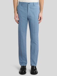 Tailored stretch cotton jacquard trousers with pressed crease. This model features a tone-on-tone all-over Paisley design. • Roma regular fit • High waist • Side slip pockets • Rear button-through welt pockets • Concealed zip and button closure • Waist loops • Made in Italy • The model is 6' 1½" (187 cm) tall and wears a size 48 PRODUCT DETAILS • 96% cotton, 4% elastane
