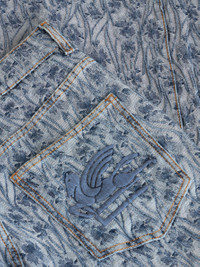 Baggy cotton denim jacquard jeans from the Men's Fall-Winter 2023 Fashion Show collection, featuring all-over floral patterns and embroidered Pegaso on the rear pocket. PRODUCT DETAILS • 100% cotton • Easy fit • Button and flap with zip fastening • Metal button • Made in Italy • The model is 188 cm / 74,01 inches tall and wears size 48