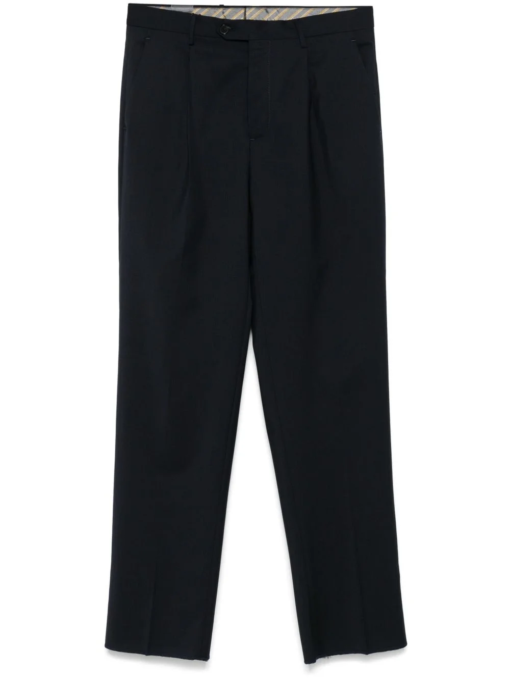 pleat-detailing wool trousers Highlights - Navy blue - Concealed front button, hook and zip fastening - Belt loops - Two diagonal pockets to the sides - Two rear button-fastening jetted pockets Made in Italy Composition Wool 100%, Acetate 60%, Viscose 40% SIZE & FIT Model measurements Height 6 ft 2 in(1.87 m) Bust/Chest 38.97 in(99 cm) Hips 37.99 in(96.5 cm) Waist 29.52 in(75 cm) FittingInformation Designed for a straight-leg, allowing for an unrestricted and comfortable fit over the leg The unfinished hems allow for the length to be altered Made from a midweight non-stretch fabric