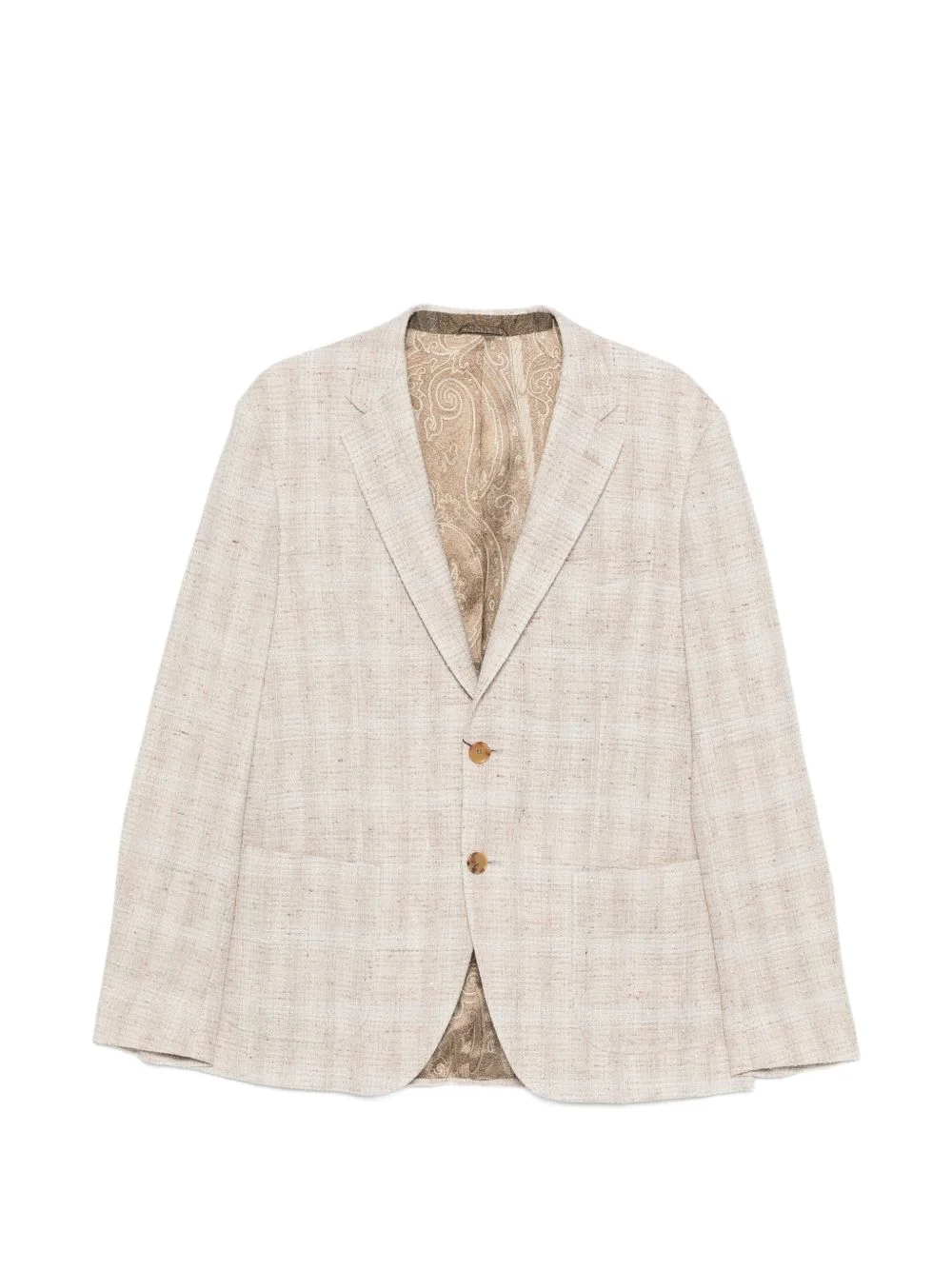 button-up blazer Highlights - Beige - Check pattern - Button closure - Front flap pockets - Paisley print Made in Italy Composition Outer: Cotton 80%, Silk 12%, Wool 7%, Elastane 1% Lining: Viscose 100% Washing instructions Dry Clean Only