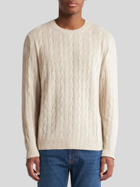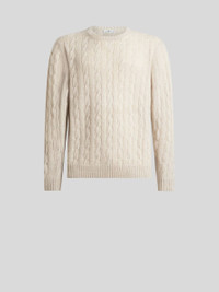 Cable-knit crew-neck sweater in pure cashmere. • Regular fit • Crew neck • Ribbed edging • Made in Italy • The model is 6' 1½" (187 cm) tall and wears a size M PRODUCT DETAILS • 100% cashmere