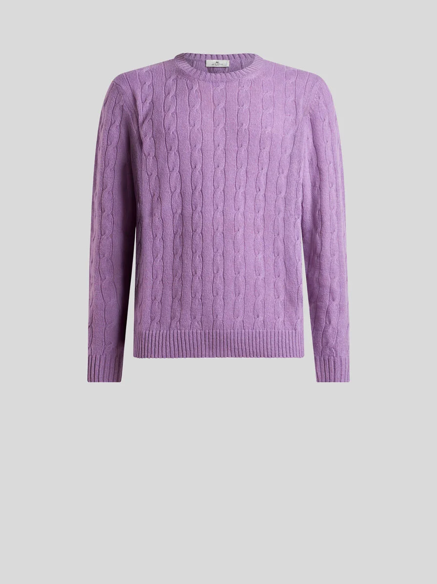 Cable-knit crew-neck sweater in pure cashmere. • Regular fit • Crew neck • Ribbed edging • Made in Italy • The model is 6' 1½" (187 cm) tall and wears a size M PRODUCT DETAILS • 100% cashmere