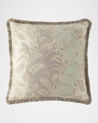 Satin decorative pillow features an intricate floral pattern Made of polyester Cotton padding Fringe border Approx. 24"Sq. Dry clean Made in Italy
