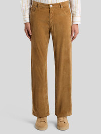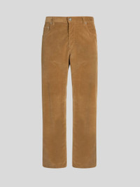 Five-pocket, straight-leg jeans in stretch cotton velvet. These feature a metal button with a raised Pegaso and a label with the Pegaso symbol and ETRO logo. • Easy fit • Five pockets • Pegaso button and zip closure • Made in Italy • The model is 6' 1½" (187 cm) tall and wears a size 48 PRODUCT DETAILS • 98% cotton, 2% elastane