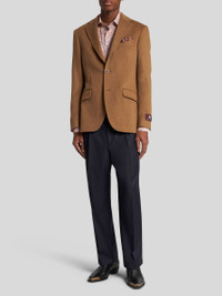 Cashmere blazer, embellished with a tailored ETRO and Pegasus logo label embroidered on the cuff. This model features a paisley-design lining. • Regular fit • Classic lapels • Single-breasted button closure • Welt breast pocket • Side flap pockets • Working cuffs • Matching AMF stitching on seam allowances • Rear vents • Made in Italy • The model is 6’2” (188 cm) tall and wears a size 48 (IT) PRODUCT DETAILS • 100% cashmere • Body: 100% viscose • Sleeves: 52% viscose, 48% acetate