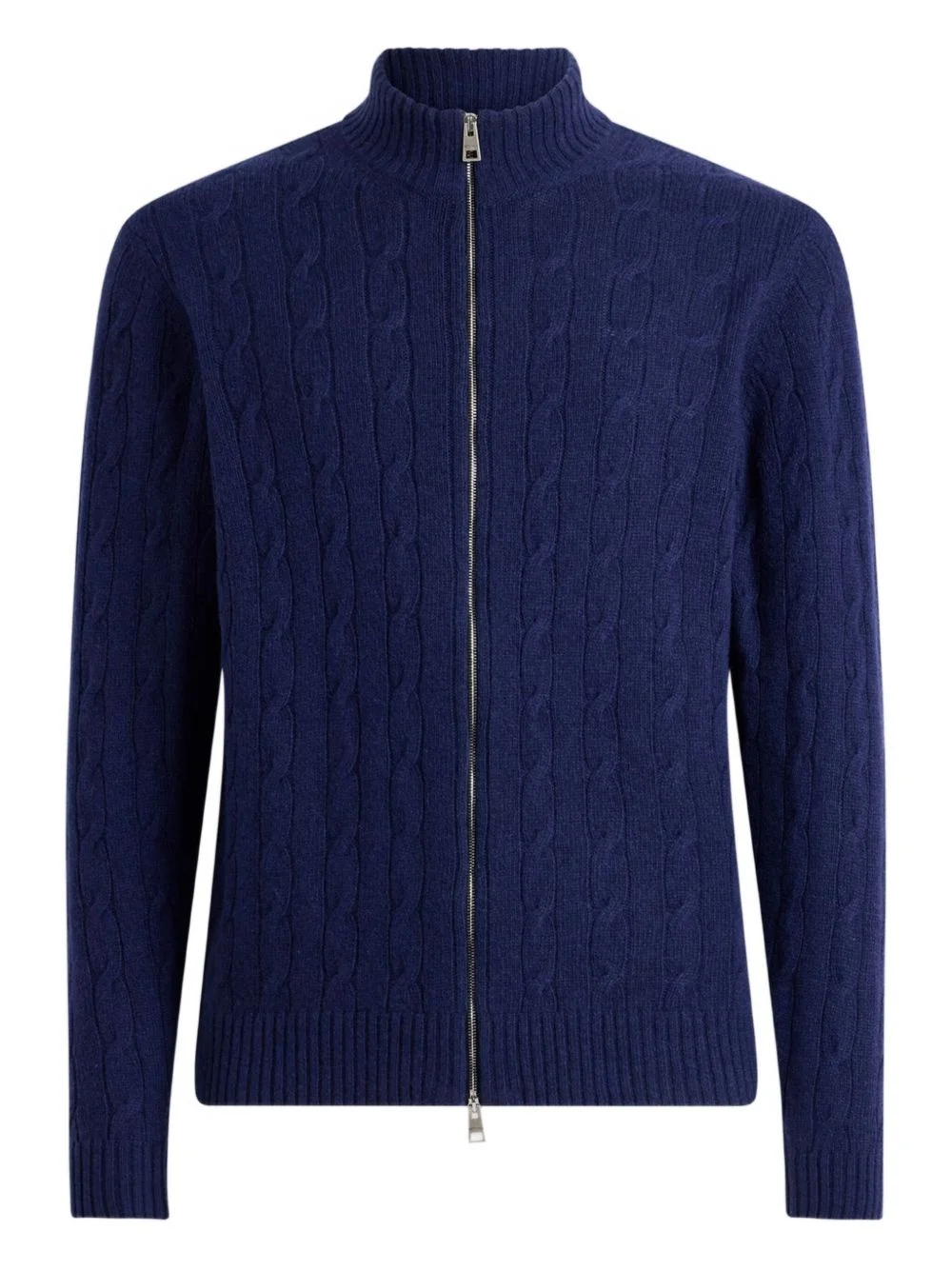 cashmere cardigan Highlights - Blue - Front zip fastening - Long sleeves - Ribbed cuffs and hem Made in Italy Composition Fabric 100%