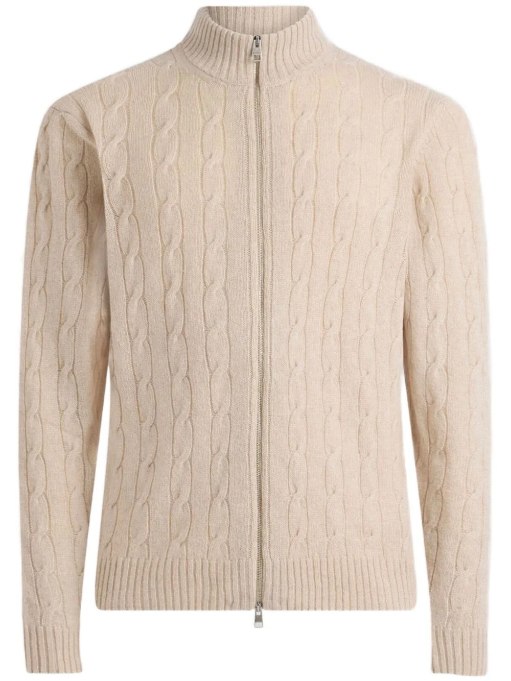 cashmere cardigan Highlights - Light beige - Front two-way zip fastening - High neck - Long sleeves Made in Italy Composition Cashmere 100%