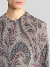 Crew-neck jumper in pure cashmere jacquard fabric with all-over foliage-style motif. Completing the model is the ribbed edging on the collar, cuffs and hem. • Regular fit • Crewneck • Long sleeves • Made in Italy • The model is 6' 1½" (187 cm) tall and wears a size M PRODUCT DETAILS • 100% cashmere