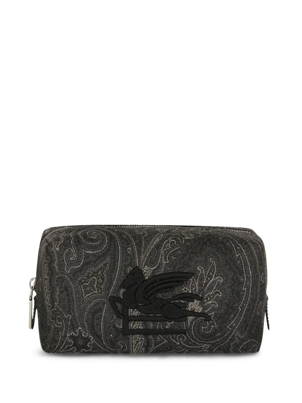 medium paisley-print beauty case Highlights - Black/multicolour - Cotton blend - Jacquard - Paisley print - Signature pegaso motif - Top zip fastening - Gold-tone hardware - Main compartment Made in Italy Composition Outer: Cotton 76%, Polyester 24% Lining: Polyester 100% SIZE & FIT Measurement DEPTH 3.14 in(8 cm) HEIGHT 3.93 in(10 cm) WIDTH 7.67 in(19.5 cm)