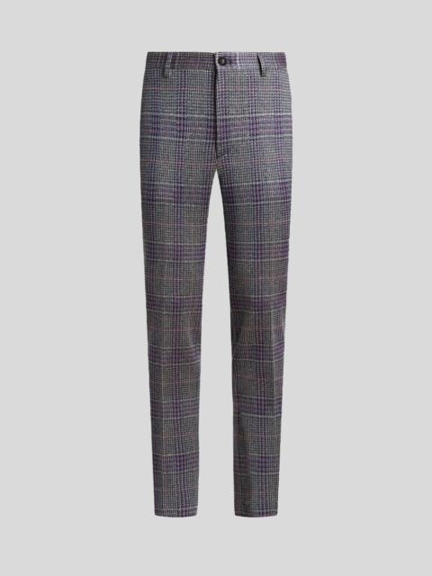 Tailored trousers in wool- and cotton-blend jacquard jersey with pressed crease detail. This model features an all-over check motif. • Roma regular fit • Side slip pockets • Rear button-through welt pockets • Concealed zip and button closure • Made in Italy • The model is 6' 1½" (187 cm) tall and wears a size 48 PRODUCT DETAILS • 80% wool, 20% cotton