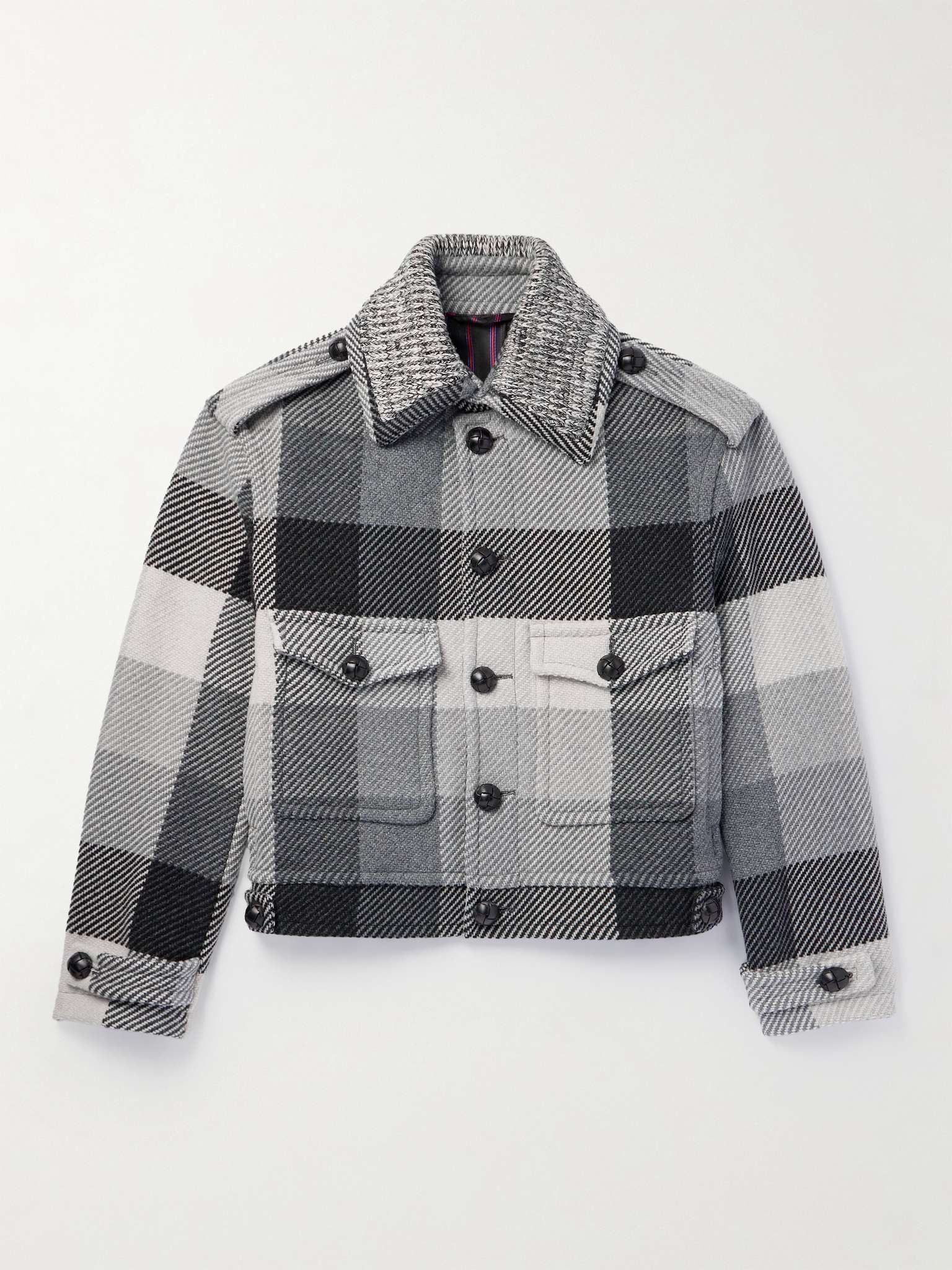 Creative Director Marco de Vincenzo highlighted Etro's history as a textile and print brand for the AW23 'Etromatters' collection - the runway was surrounded by fabric samples from its archives. Made from wool-blend twill, this jacket is patterned with oversized checks and has particularly large patch pockets. Size & Fit - Fits true to size, however those who are between sizes should take the smaller size - Designed for a slightly loose fit - Mid-weight, non-stretchy fabric - Model is shown wearing a M - Model measures: chest 38"/ 96cm, height 6'2"/ 188cm Details & Care - Grey, black and white wool-blend twill - Button fastenings - 70% wool, 25% polyamide, 5% other fibers; lining: 52% viscose, 48% acetate - Dry clean - This item has been imported