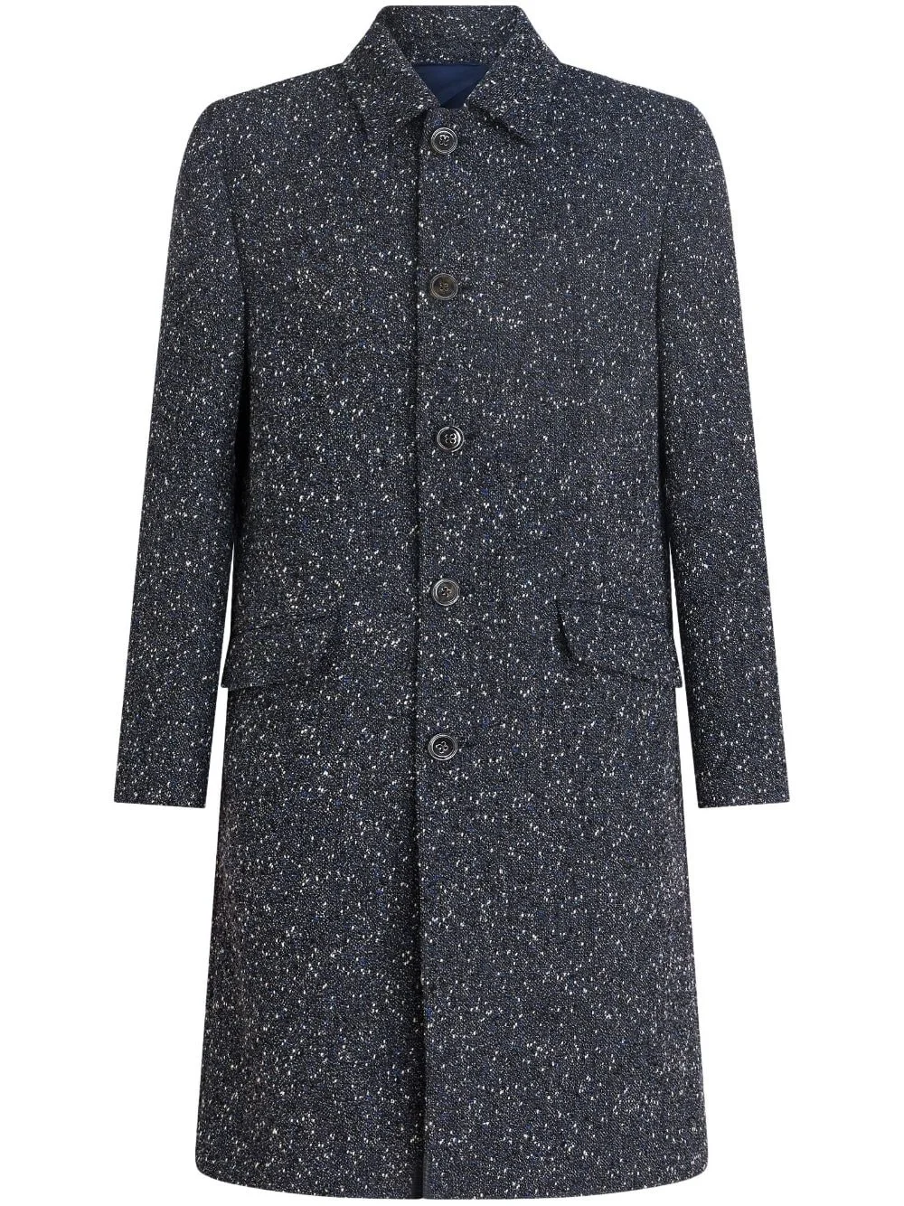 contrasting-trim button-down coat Highlights - Dark grey - Virgin wool blend - Contrasting trim - Rear slit - Spread collar - Front button fastening - Two front flap pockets - Long sleeves - Straight hem - Knee-length Made in Italy Composition Outer: Virgin Wool 95%, Polyamide 5% Sleeve Lining: Cupro 100% Washing instructions Read Manufacturer Guidelines