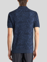 Polo shirt in cotton- and wool-blend jacquard fabric with all-over floral motif. The ribbed edging on the collar, sleeve ends and hem completes the garment. • Regular fit • Pointed collar with logo-branded buttons • Short sleeves • Ribbed edging • Made in Italy • The model is 6' 1½" (187 cm) tall and wears a size M PRODUCT DETAILS • 57% cotton, 22% wool, 21% acrylic