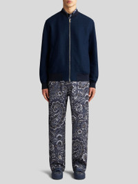 Bomber jacket in cotton fabric with a raised woven texture. The inner lining is embellished with a Paisley print. • Regular fit • Two-way zip closure • Side slip pockets • Ribbed, collar, cuffs and hem • The model is 74.01" (188 cm) tall and wears a size M • Made in Romania PRODUCT DETAILS • 100% cotton • Sleeves: 100% viscose • Lining: 100% polyester