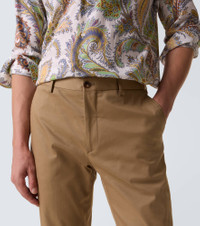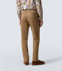 Trust in Etro for expert Italian tailoring. These chinos are crafted from cotton into a slim-leg silhouette. Product Details - Material: 98% cotton, 2% elastane - Care instructions: dry clean - Made in Italy - Designer color name: Khaki - Item color: beige - Pockets: side slit pockets, back pockets - Belt loops - Closure: zipper fly, button fastening - Hem: unfinished (ready for alteration) - Item number: P01049754 Size & Fit - True to size - Non-stretchy fabric - Slim-leg - Unhemmed for tailoring - Height of model is 189cm-74.5" and wears a size 50