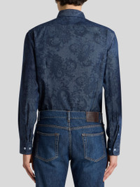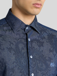 COTTON DENIM SHIRT WITH LEAFY PAISLEY MOTIF AND PEGASO