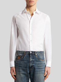 Cotton jacquard shirt with decorative, tone-on-tone tie-style motif. • Regular fit • Spread collar • Buttoned working cuffs • Made in Italy • The model is 6’1”(186 cm) tall and wears a size 40 (IT) PRODUCT DETAILS • 100% cotton