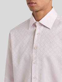 Pure cotton jacquard shirt with tonal all-over geometric motif. • Roma regular fit • Pointed collar, 3.1 inches (8 cm) wide • Button closure • Double-buttoned working cuffs • Made in Italy • The model is 6' 1½" (187 cm) tall and wears a size 39 (IT) PRODUCT DETAILS • 100% cotton