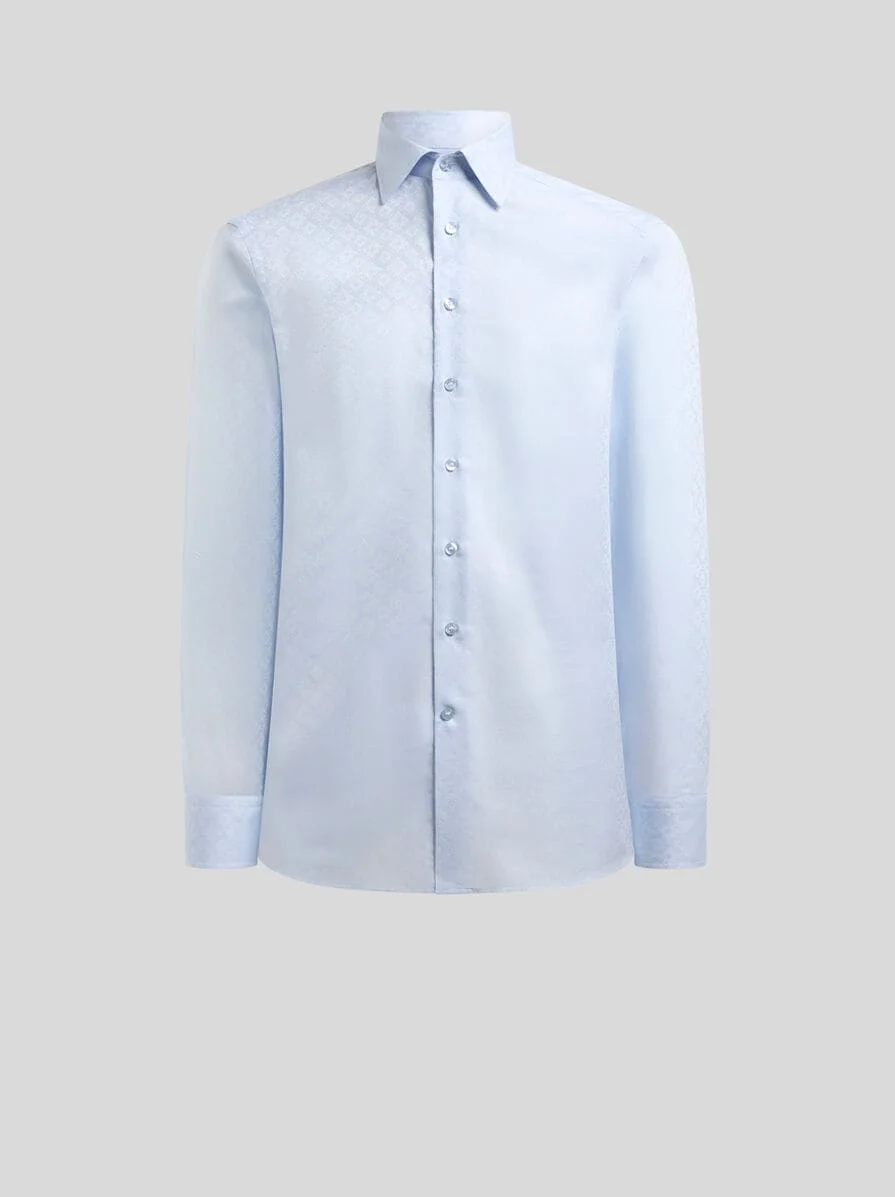 Pure cotton jacquard shirt with tonal all-over geometric motif. • Roma regular fit • Pointed collar, 3.1 inches (8 cm) wide • Button closure • Double-buttoned working cuffs • Made in Italy • The model is 6' 1½" (187 cm) tall and wears a size 39 (IT) PRODUCT DETAILS • 100% cotton