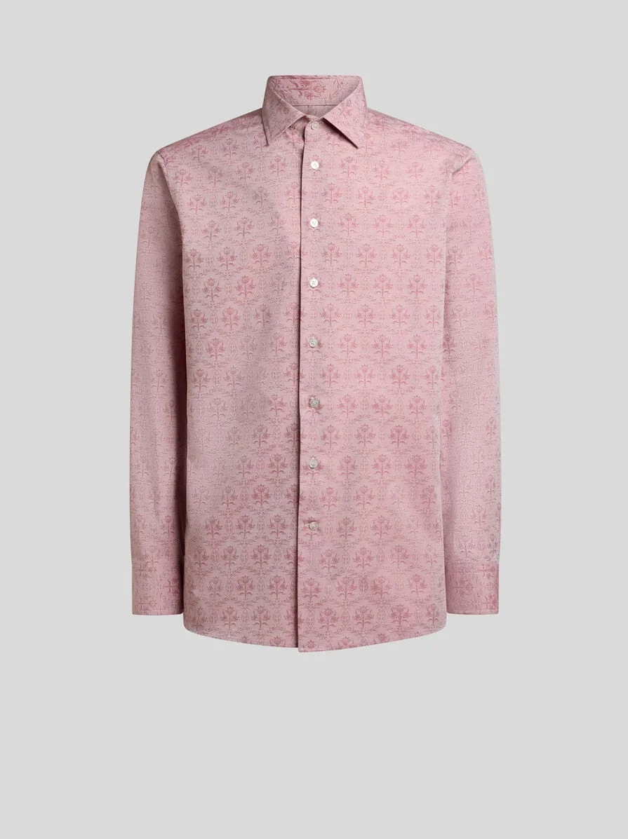Pure cotton jacquard shirt with tonal all-over floral motif. • Roma regular fit • Spread collar • Long sleeves • Button closure • Working cuffs • Made in Italy • The model is 6' 1" (186 cm) tall and wears a size 39 PRODUCT DETAILS • 100% cotton