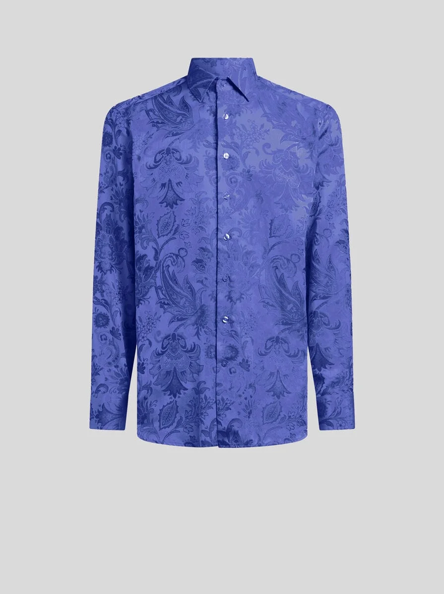 Pure cotton classic shirt with distinctive, all-over floral jacquard motif. • Roma regular fit • Pointed collar • Long sleeves • Double-buttoned working cuffs • Made in Italy • The model is 6' 1½" (187 cm) tall and wears a size 39 PRODUCT DETAILS • 100% cotton
