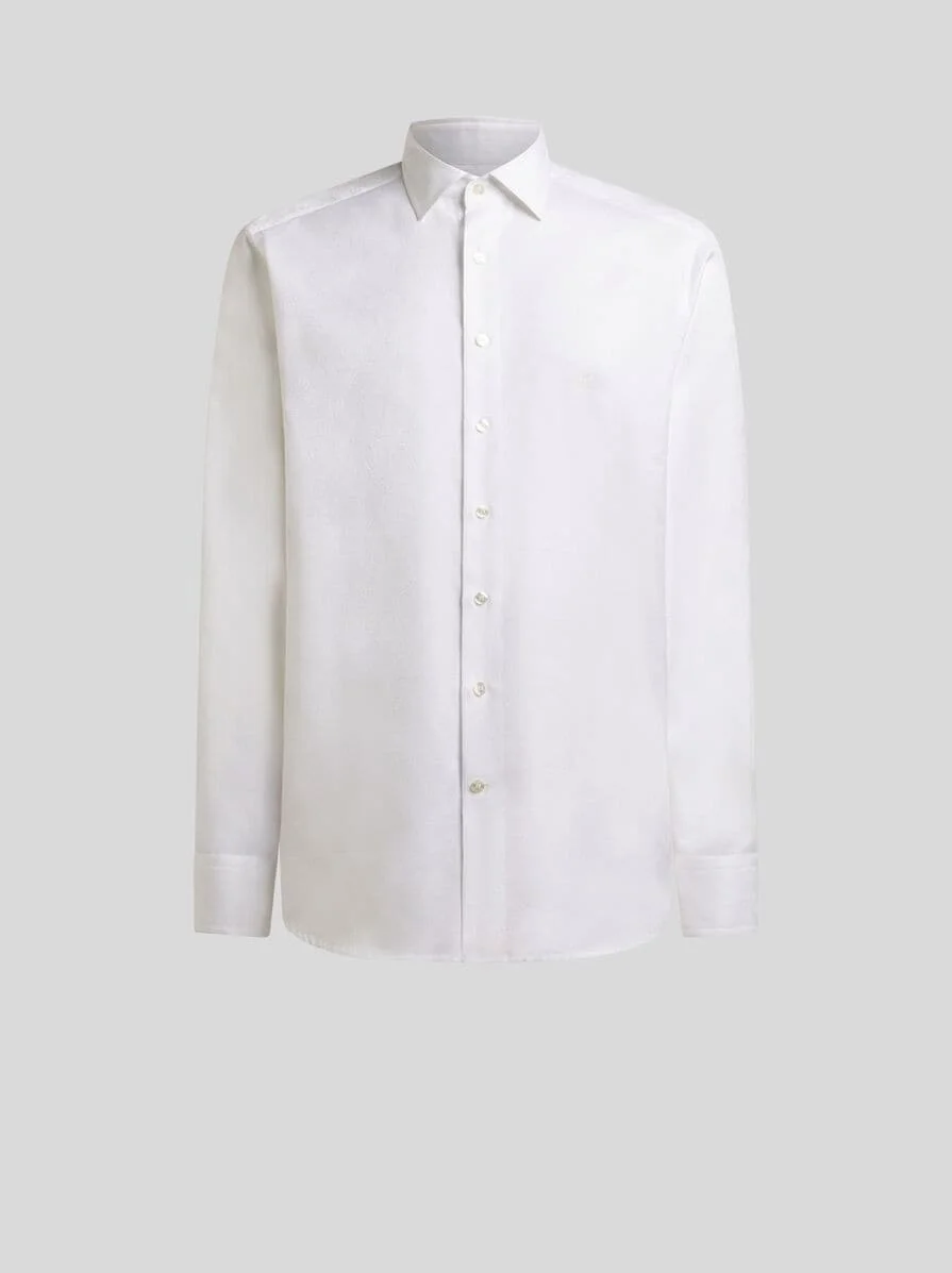 Long-sleeved shirt in pure cotton fabric. This garment is embellished with the iconic Paisley jacquard motif and a small, tone-on-tone embroidered Pegaso on the chest. • Regular fit • Pointed collar • Branded-button closure • Double-buttoned working cuffs • Made in Italy • The model is 6' 1" (186 cm) tall and wears a size 39 PRODUCT DETAILS • 100% cotton