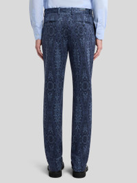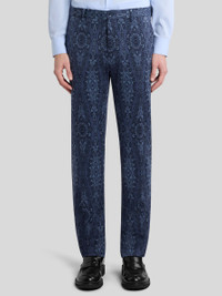 Tailored pure cotton trousers with pressed creases. This model features a tone-on-tone medallion and Paisley jacquard motif all over. • Roma fit • Concealed zip and button closure • Slanted front pockets • Rear button-through welt pockets • Made in Italy • The model is 6' 1½" (187 cm) tall and wears a size 48 PRODUCT DETAILS • 100% cotton