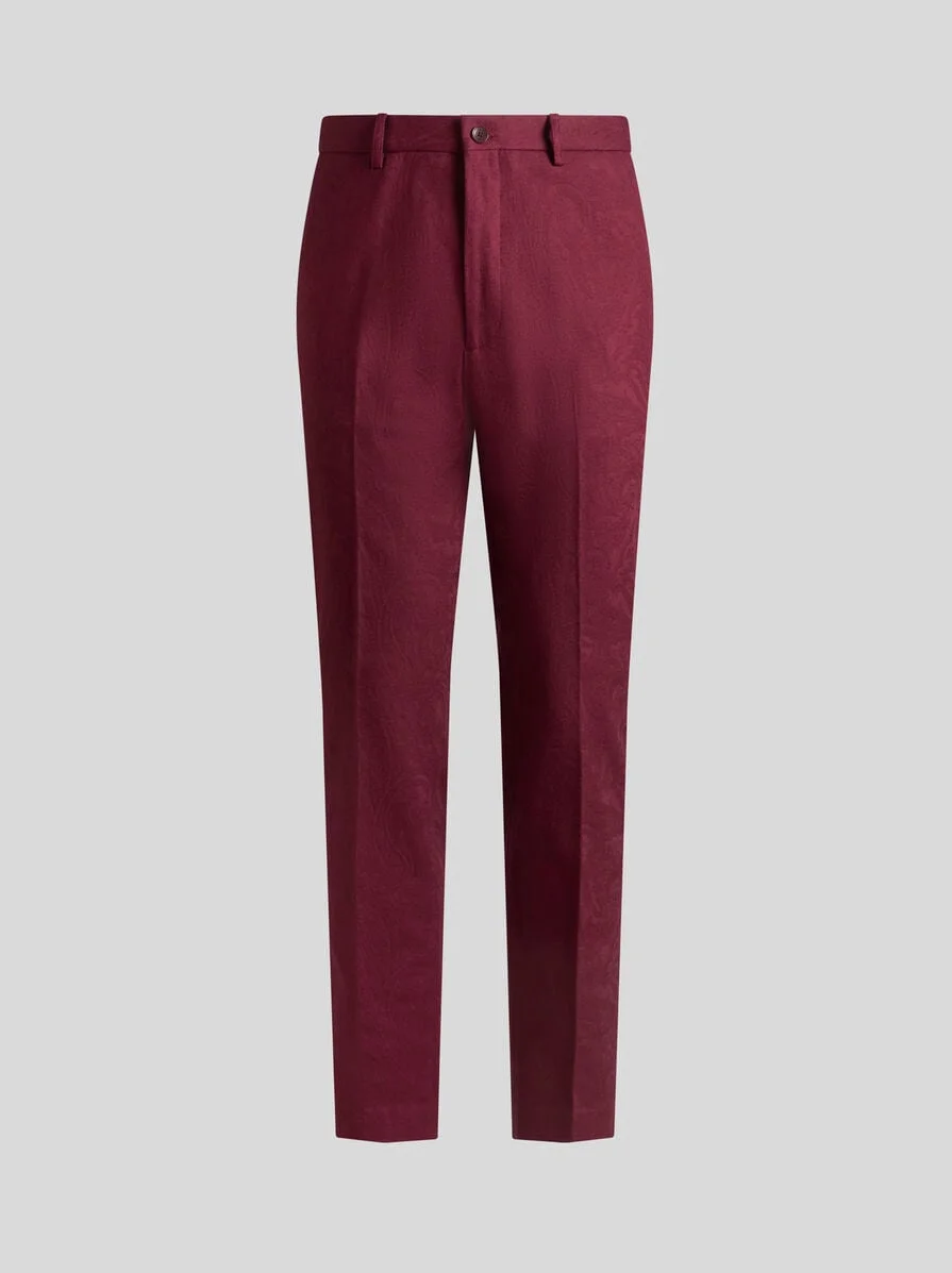 Tailored trousers in slightly stretchy cotton jacquard fabric. They feature an all-over floral motif and are complete with the classic pressed creases. • Roma regular fit • High waist • Rear button-through welt pockets • Concealed zip and button closure • Made in Italy • The model is 6' 1½" (187 cm) tall and wears a size 48 (IT) PRODUCT DETAILS • 98% cotton, 2% elastane