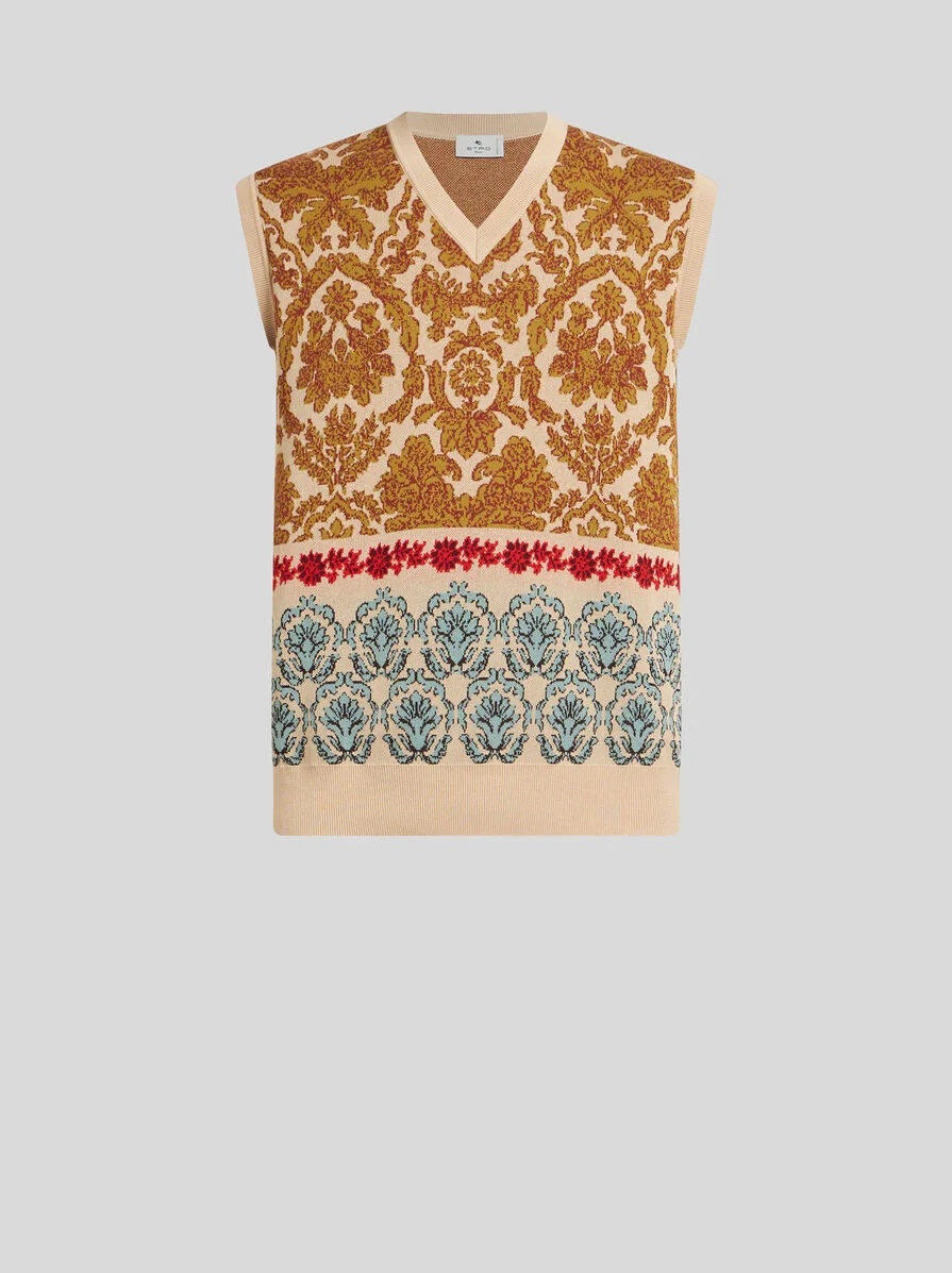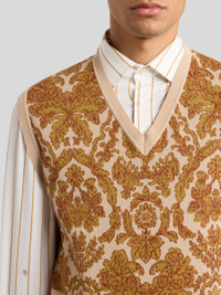Waistcoat in pure cotton jacquard fabric with placed floral motif. Completing the garment is the ribbed edging at the neck, armholes and hem. • Regular fit • V-neck • Ribbed edging • Made in Italy • The model is 6' 1½" (187 cm) tall and wears a size M PRODUCT DETAILS • 100% cotton