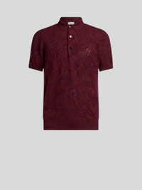 Pure cotton polo shirt with perforated floral Paisley motif. The ribbing on the collar, sleeve ends and hem complete the garment. • Regular fit • Short sleeves • Made in Italy • The model is 6' 1½" (187 cm) tall and wears a size M PRODUCT DETAILS • 100% cotton