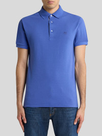 Pure cotton pique polo shirt with distinctive, tonal embroidered Pegaso on the front and floral print on the inside of the collar and placket. • Roma regular fit • Short sleeves • Made in Italy • The model is 6' 1½" (187 cm) tall and wears a size M PRODUCT DETAILS • 100% cotton