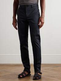 Roma Slim-Fit Straight-Leg Stretch-Cotton Twill Trousers Blue
