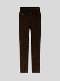 Ribbed cotton velvet trousers embellished by a taped side band and micro floral patterns. PRODUCT DETAILS • 100% cotton • Band: 100% polyester • confort fit • Piped side pockets • Piped rear pocket • Rear pocket with flap • Button and zip with flap fastening • Horn buttons • Unfinished leg bottom 19 cm (7.48 inches) • Made in Italy • The model is 188 cm/74 inches tall and wears size 48