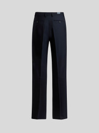 Tailored trousers in plain-coloured pure wool fabric with pressed creases. • Regular fit • Side slip pockets • Rear welt pockets • Concealed zip and button closure • Bottom opening: 8.3 inches (21 cm) • Made in Italy • The model is 6' 1" (186 cm) tall and wears a size 48 PRODUCT DETAILS • 100% wool • Lining: 60% acetate, 40% viscose