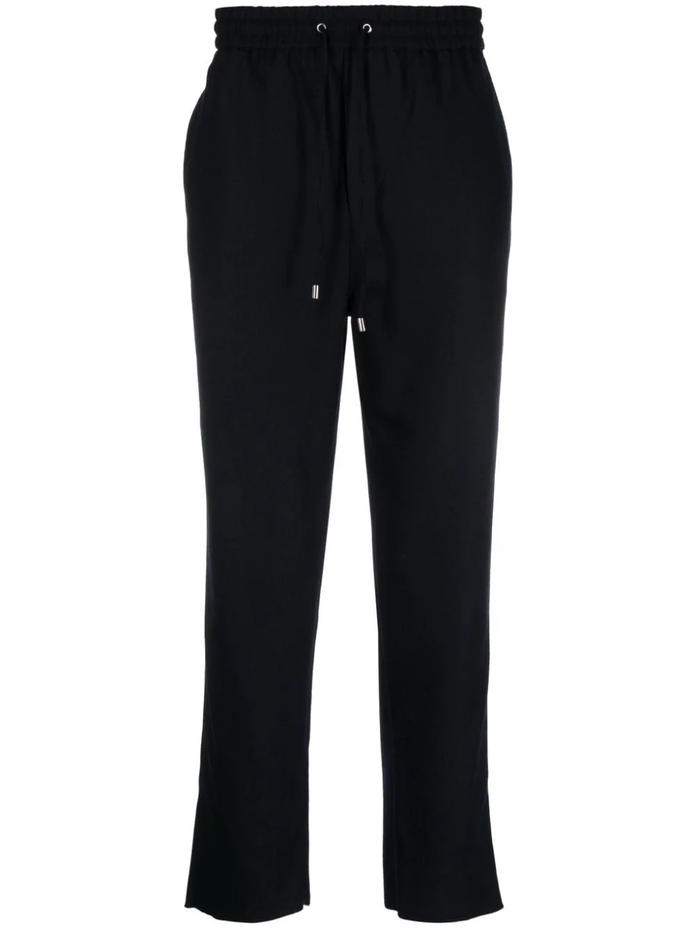 drawstring-waist wool trousers Highlights - Midnight blue - Stretch-wool - Elasticated drawstring waistband - Mid-rise - Straight leg - Cropped leg - Two side inset pockets - Two rear flap pockets Made in Italy Composition Lining: Acetate 60%, Viscose 40% Outer: Wool 98%, Elastane 2% SIZE & FIT Model measurements Height 6 ft 2 in(1.87 m) Bust/Chest 36.41 in(92.5 cm) Hips 37 in(94 cm) Waist 29.52 in(75 cm) FittingInformation Designed for a relaxed tapered leg, allowing a comfortable loose fit above the knee with a closer fit towards the calves Adjust this piece’s waistband to your preference using the drawstring Made from a midweight stretch fabric, this piece offers elasticity and flexibility when worn This piece fits true to size – take your usual size