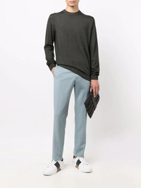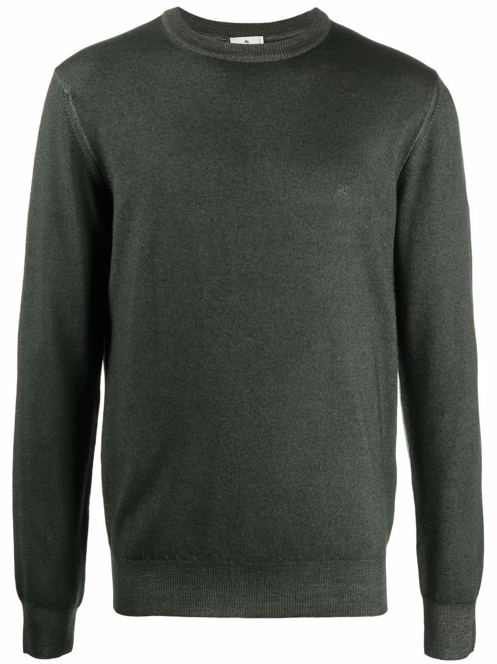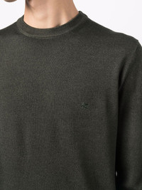 embroidered-logo jumper green virgin wool ribbed detailing embroidered logo at the chest round neck long sleeves straight hem Made in Italy Composition Virgin Wool 100% SIZE & FIT Model measurements Height 6 ft 1 in(1.85 m) Bust/Chest 35.82 in(91 cm) Hips 37.79 in(96 cm) Waist 29.13 in(74 cm) FittingInformation This piece fits true to size. We recommend you get your regular size Cut for a relaxed fit Made with a mid-weight fabric Washing instructions Hand Wash