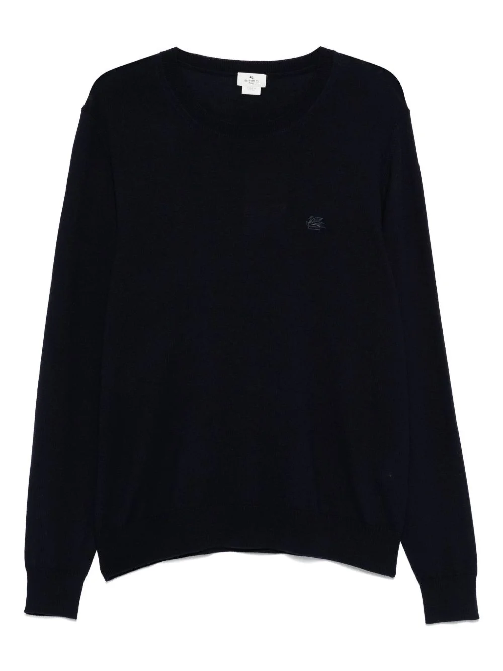 embroidered-logo sweater Highlights - Dark blue - Crew neck - Long sleeves Imported Composition Wool 100% SIZE & FIT Model measurements Height 6 ft 0 in(1.84 m) Bust/Chest 35.82 in(91 cm) Hips 37 in(94 cm) Waist 28.34 in(72 cm) FittingInformation Designed for a relaxed fit, this piece allows for comfort and movement when worn The ribbed hem offers a close, comfortable fit Made with a midweight knit, this piece offers some stretch Washing instructions Machine Wash