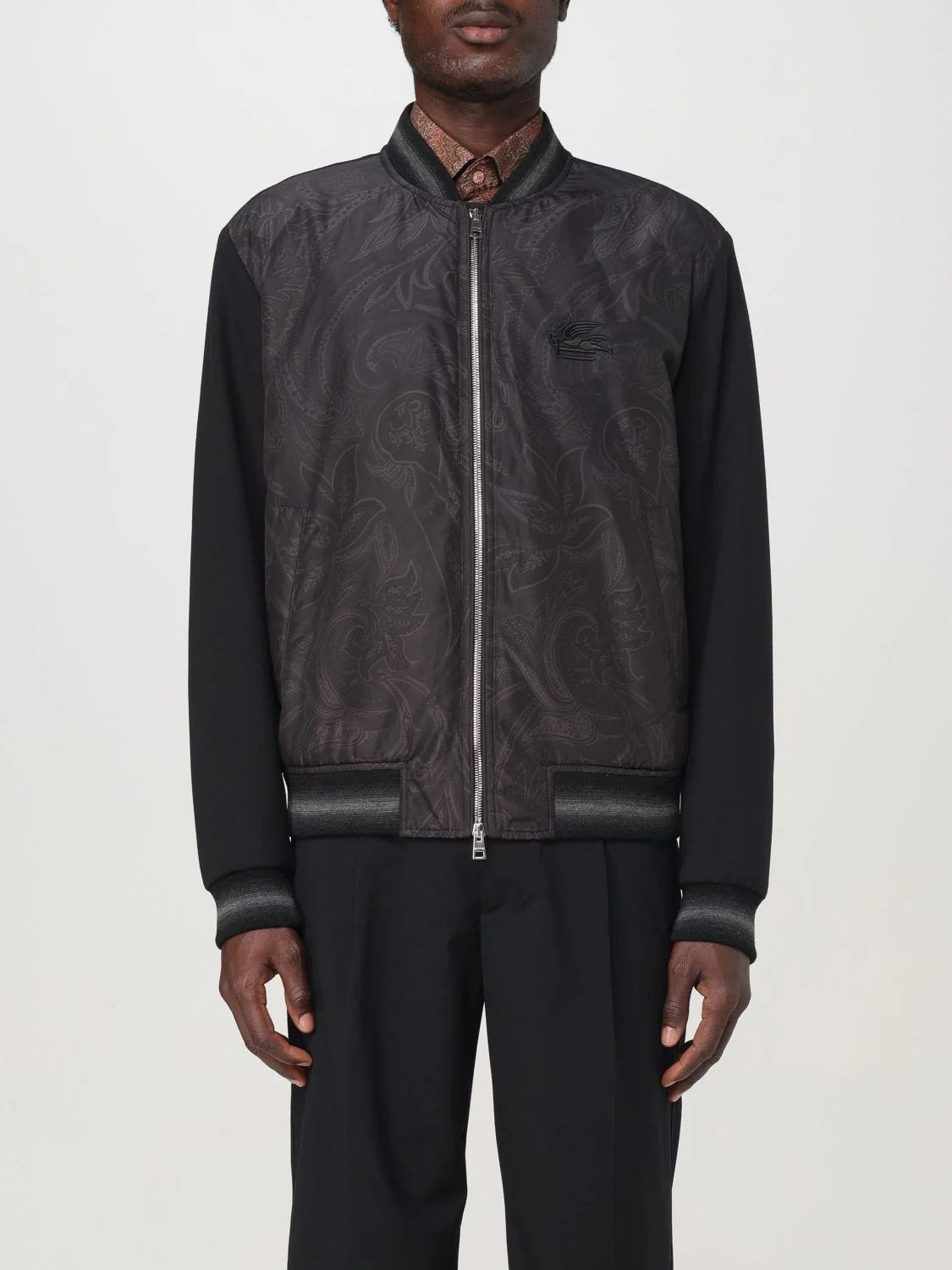 DESCRIPTION - Logo: Etro Pegaso - Shoulders: Regular - Sleeves: Long - Closure: With zip and double slider - Pockets: America - Bottom: With straight hemline - Neck: Bomber - Materials: Nylon - Pattern: Paisley DETAILS AND CARE Composition Polyester/Wool/Acrylic/Cotton/Elastane SIZE AND FIT Sizes not available Size and fit Regular fit Designer code: MRBA001799SAS01 X0810 Giglio Code: F97706 Designer: Etro Collection: Etro Men Category: Clothing Etro