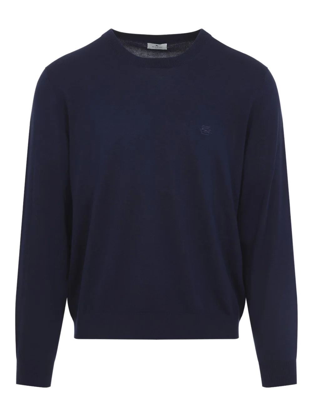 embroidered round-neck sweater Highlights - Blue - Embroidered detail - Round neck - Long sleeves - Ribbed knit - Straight hem Imported Composition Cotton 100% Washing instructions Read Manufacturer Guidelines