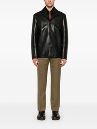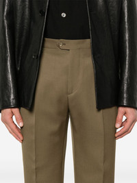wool trousers Highlights - Golden brown - Wool - Twill weave - Front button and zip fastening - Two side slash pockets - Pleat detailing - Two rear button-fastening jetted pockets - Straight leg Made in Italy Composition Lining: Acetate 60%, Viscose 40% Outer: Wool 100% SIZE & FIT Model measurements Height 6 ft 2 in(1.87 m) Bust/Chest 37.79 in(96 cm) Hips 37.79 in(96 cm) Waist 30.31 in(77 cm) FittingInformation Designed for a tapered leg, offering a loose unrestricted fit over the leg with a closer fit towards the ankle The unfinished hems allow for the length to be altered Made from a midweight non-stretch fabric