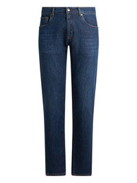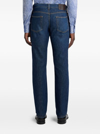 five-pockets slim-fit jeans Highlights - Blue - Tonal stitching - Five-pockets - Belt-loops - Leather logo-patch Imported Composition Cotton 95%, Cashmere 5% Washing instructions Read Manufacturer Guidelines
