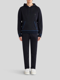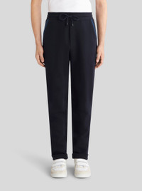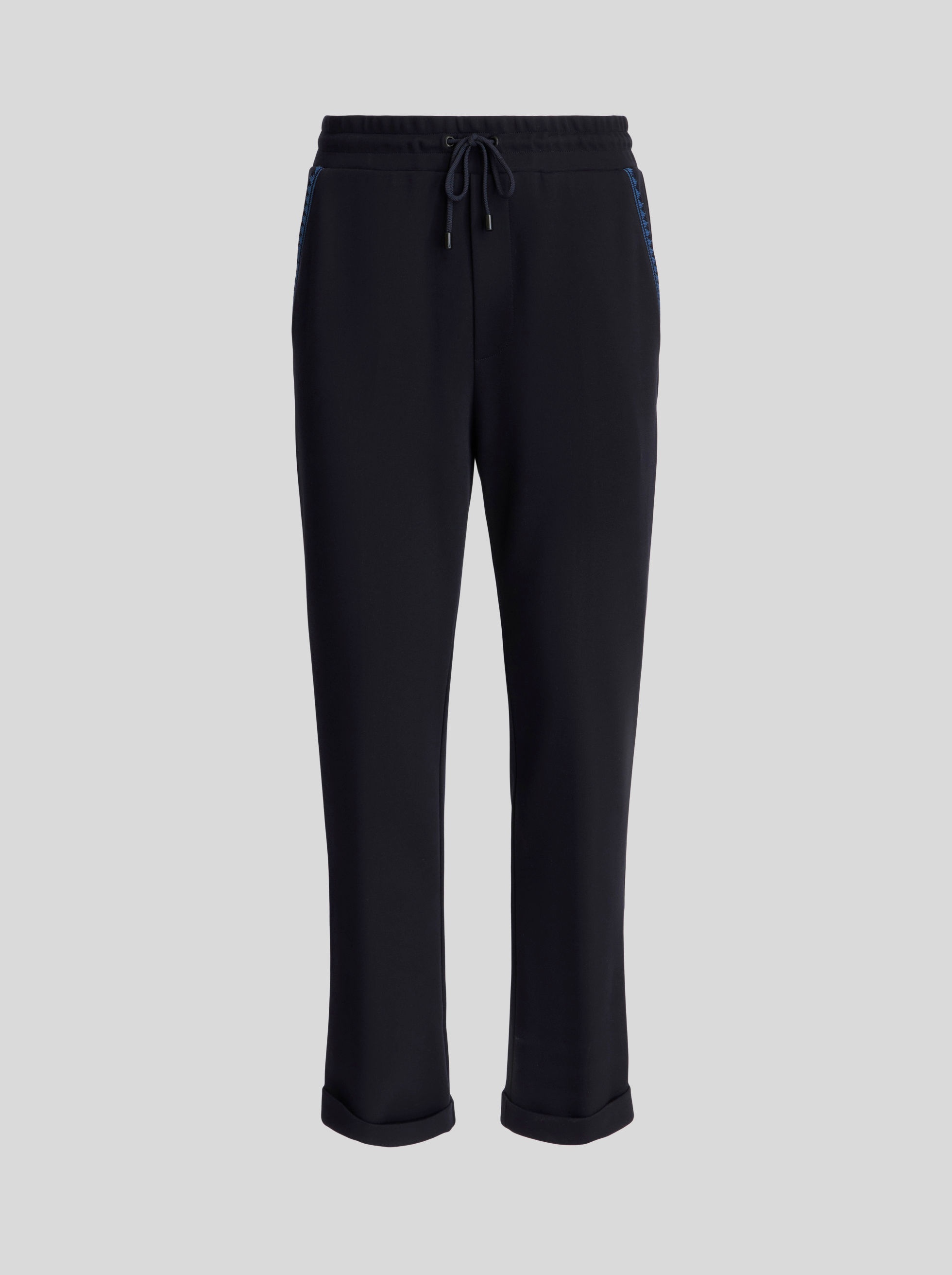 Mixed cotton fleece trousers with contrasting decorative geometric details in decorative greca style. PRODUCT DETAILS • 70% cotton, 30% polyester • Regular fit • Drawstring waist • Side pockets • Piped rear pocket • Made in Italy • The model is 188 cm tall and wears size M