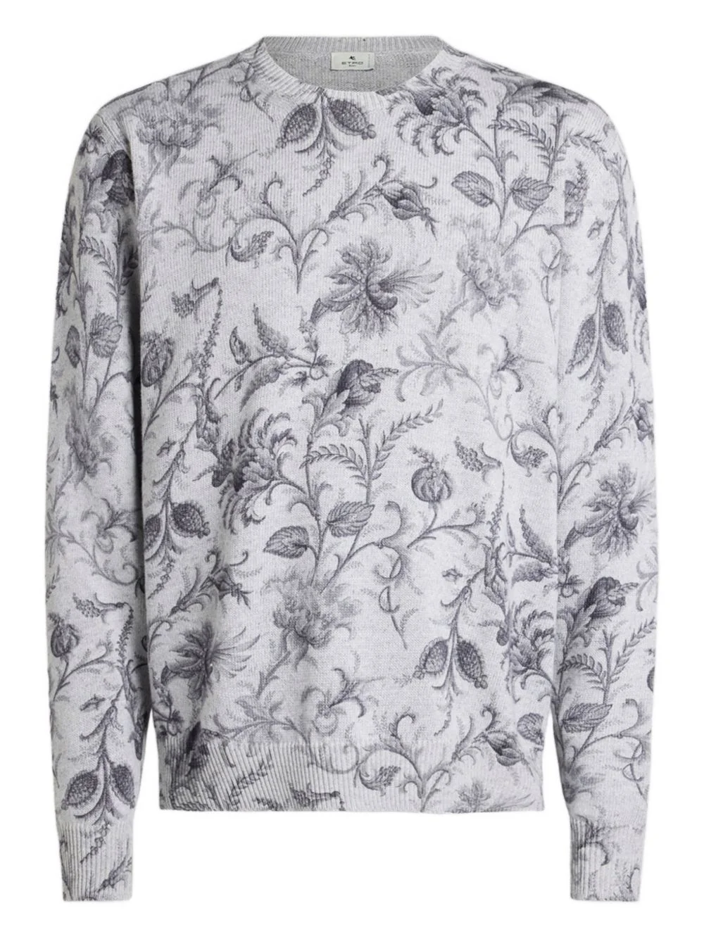 flora- motif sweater Highlights - Grey - Floral motif - Round neck - Ribbed hem - Long sleeves - Ribbed cuffs Made in Italy Composition Cotton 50%, Linen/Flax 50% Washing instructions Read Manufacturer Guidelines