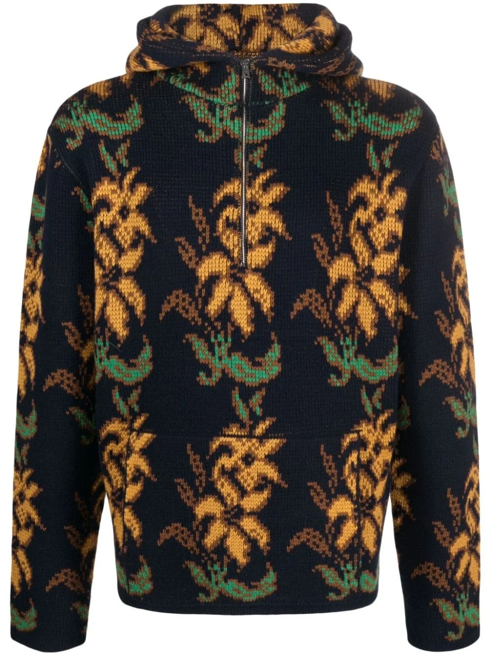 floral-intarsia virgin wool hoodie Highlights - Navy blue/apricot orange/lime green - Virgin wool - Knitted construction - Floral intarsia knit - Short front zip fastening - Slouchy hood - Long sleeves - Front pouch pocket - Straight hem Made in Italy Composition Virgin Wool 100% SIZE & FIT Model measurements Height 6 ft 2 in(1.87 m) Bust/Chest 36.41 in(92.5 cm) Hips 37 in(94 cm) Waist 29.52 in(75 cm) FittingInformation Designed to be unstructured, offering a loose fit throughout Made with a midweight knit, this piece offers some stretch This piece fits true to size – take your usual size Washing instructions Hand Wash