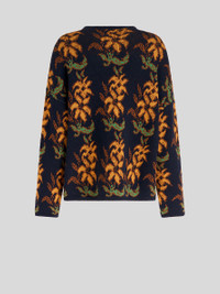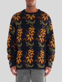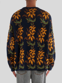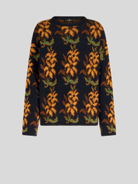 Oversize round neck virgin wool jumper from the Men's Fall-Winter 2023 Fashion Show collection, decorated by placed floral patterns. PRODUCT DETAILS • 100% virgin wool • Oversize • Round neck • Long sleeves • Made in Italy • The model is 188 cm / 74,01 inches tall and wears size M